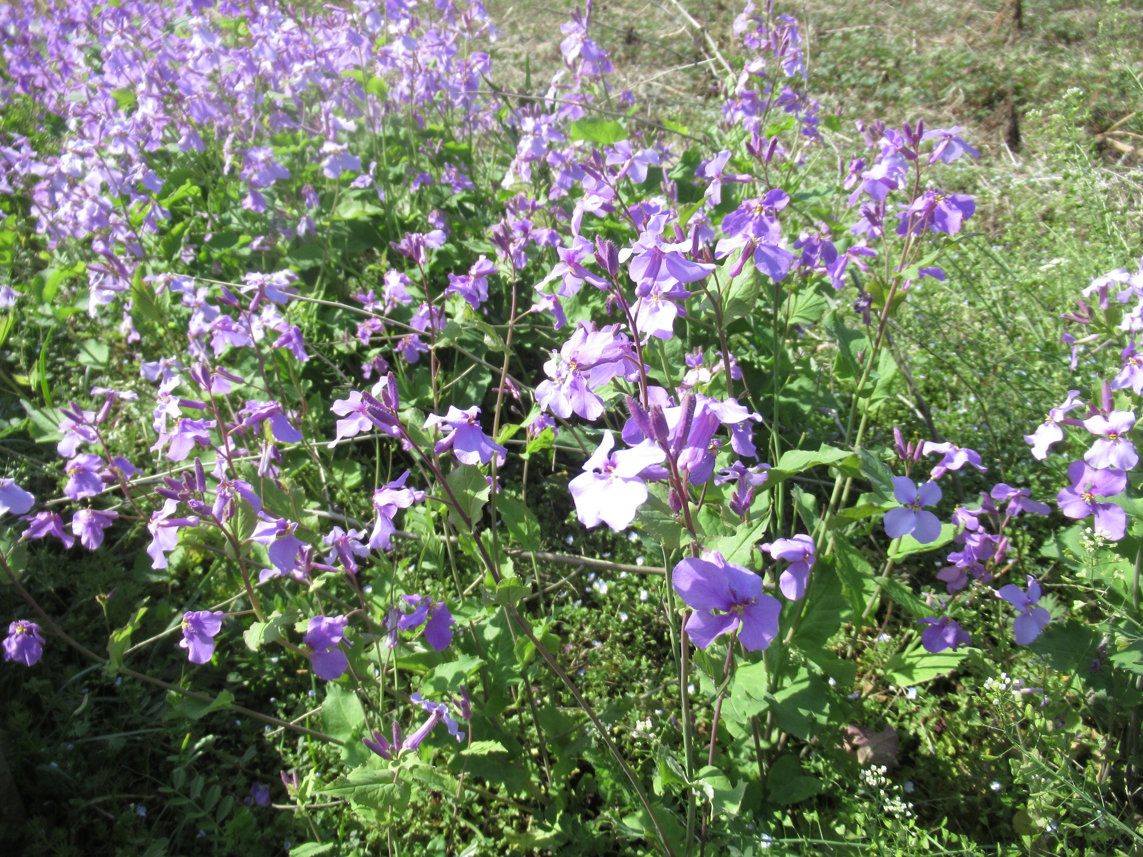 ハナダイコンは、アブラナ科オオアラセイトウ属の植物で、花の形状は大根と同様に4弁です。花は薄紫色で、大根の花とは異なります。ハナダイコンは、園芸植物としても人気があります。ハナダイコンの花が咲き誇っている様子は美しいですね🌸