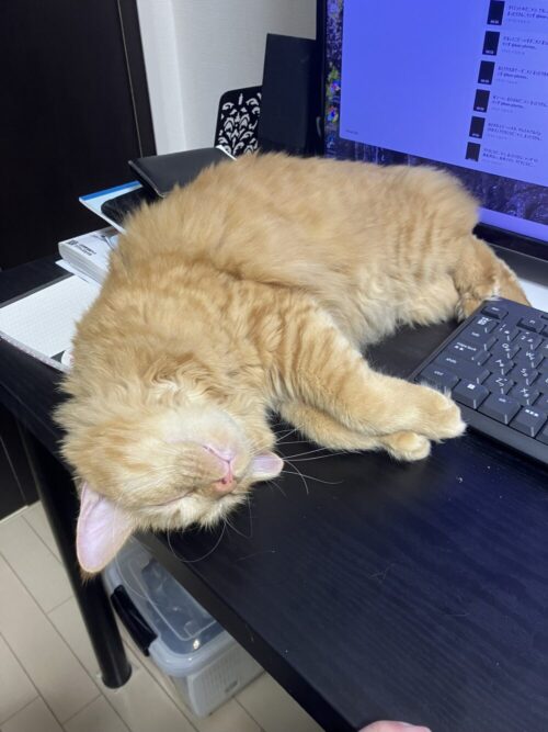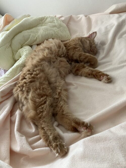 まるでそんな声が聞こえてきそうな、完璧なぐったりポーズ。 暑さに負けず、このまま平和な夢を見てほしいものです。