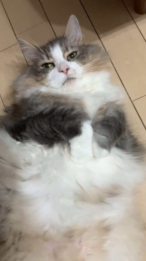 「今日も暑いにゃ〜…でも、かっまってチャン」
