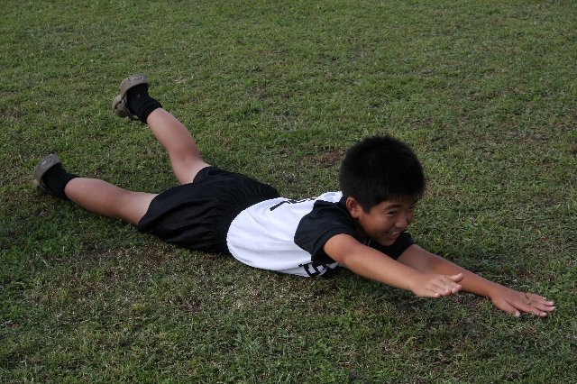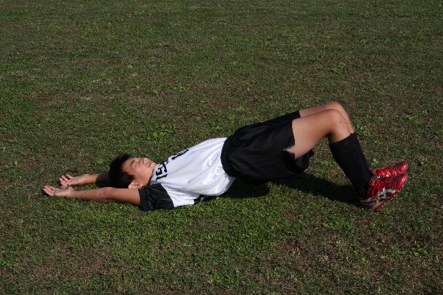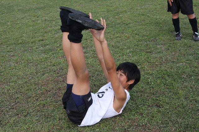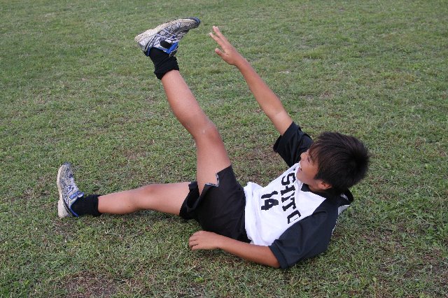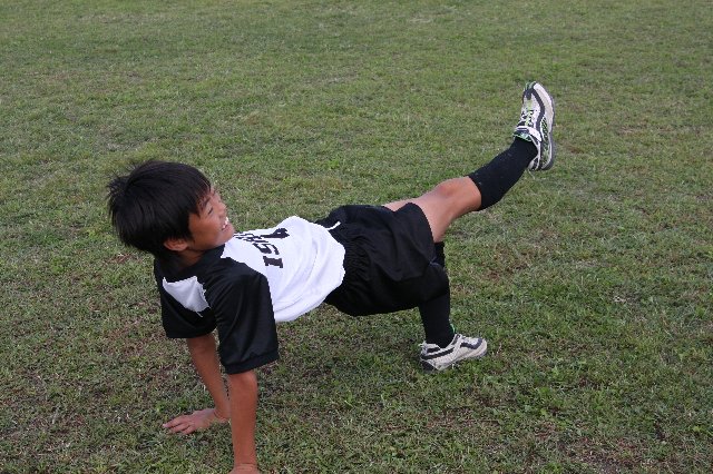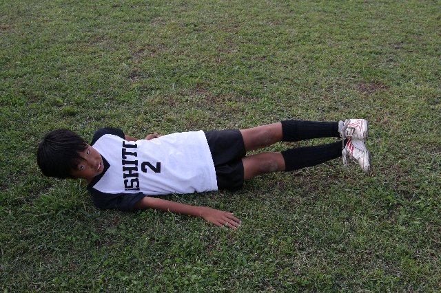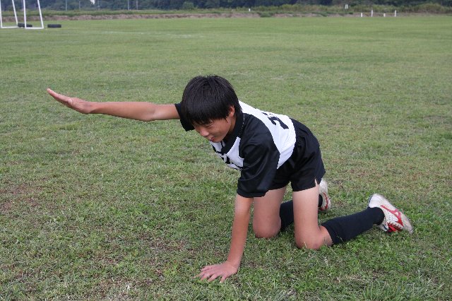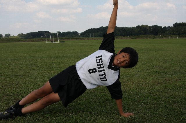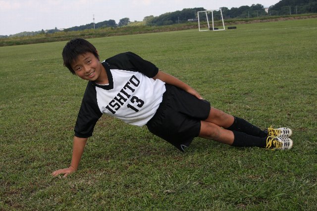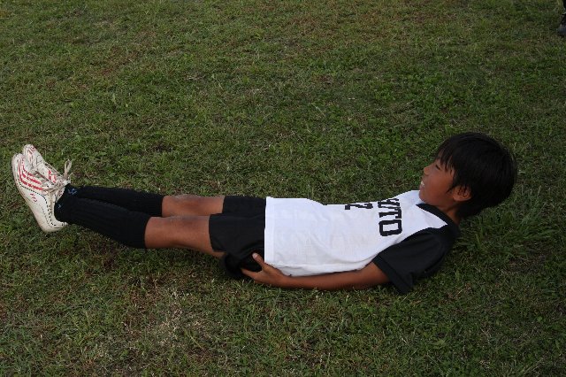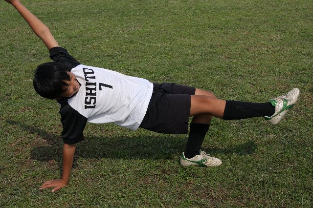 サッカー選手がいくら脚や胸や背中の筋肉を鍛えても、軸となる中心の筋肉が弱いと意味がありません。体幹(コア)が強く均等のとれた筋力バランスが必要です!いわゆるインナーマッスルも該当します。ぜひ毎日10分でも良いのでチャレンジしてみてください! ポジションキープ時間、最初は五秒位を目標とし徐々に伸ばして、小学生なら1分を目指し頑張りましょう! |